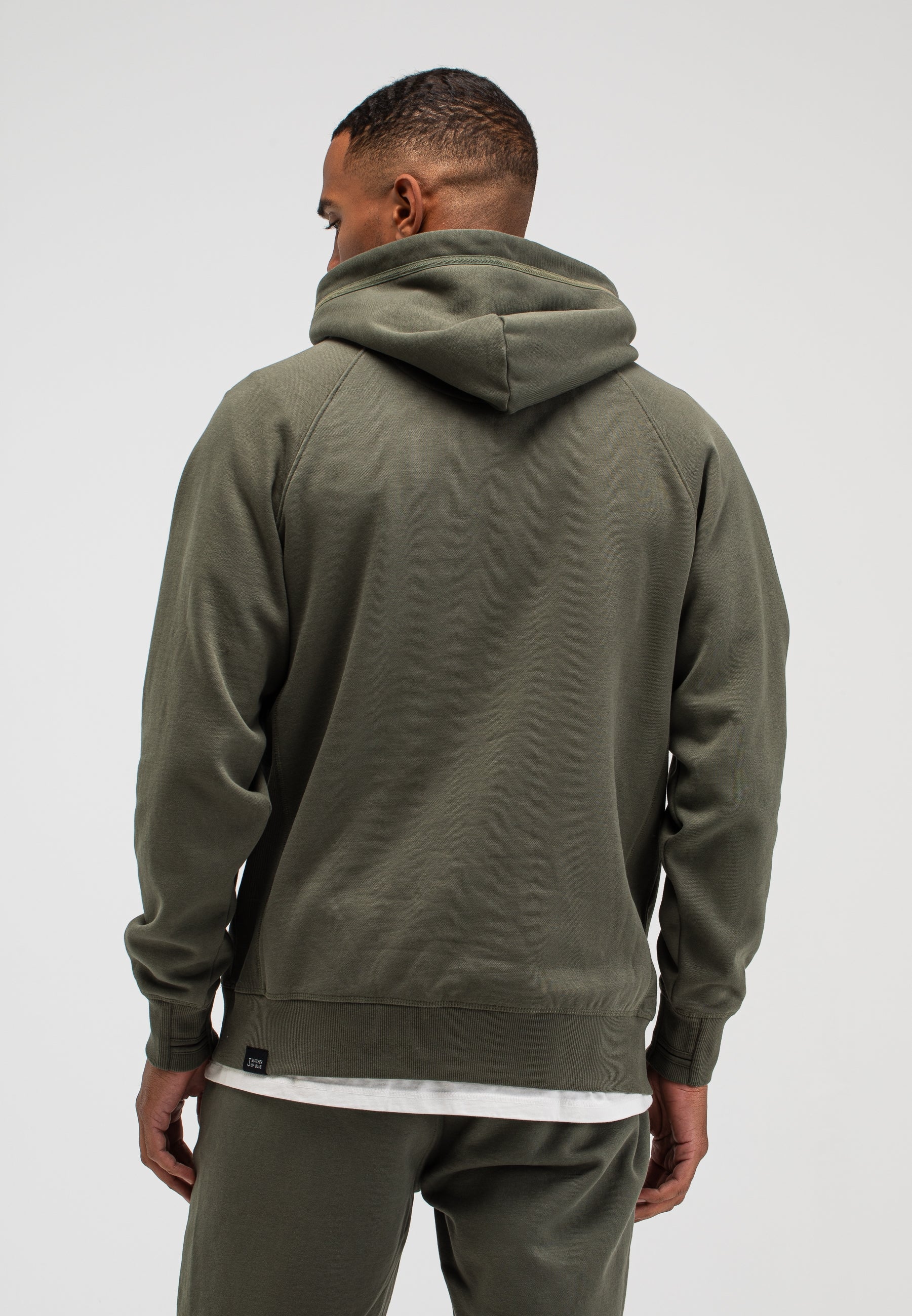 Der Army Hooded, einer der wichtigsten Bestandteile unseres Army-Pakets. Ein bequemer Kapuzenpullover aus weicher Baumwolle, verziert mit einem ikonischen Haken-Badge.