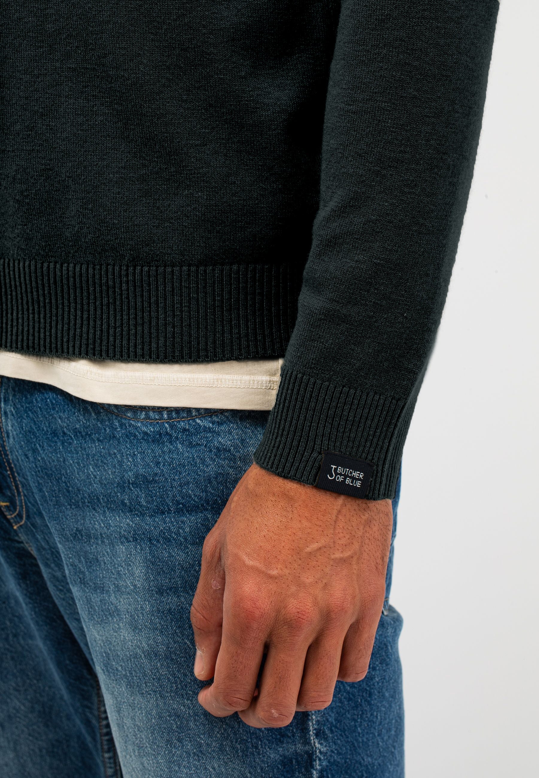 De compositie van het breisel is wat onze CLIFDEN uniek maakt. Door 43% wol, 21% polyester, 20% viscose, 16% Polyamide te mengen hebben we nogal letterlijk het beste uit verschillende werelden samengebracht, hierdoor is deze trui zacht, warm, duurzaam en stijlvol. De trui heeft een ronde hals die mooi aangesloten zit en unieke details als de herkenbare naden op de schouder. De butcher ‘hook badge’ maakt het artikel op een subtiele manier af.