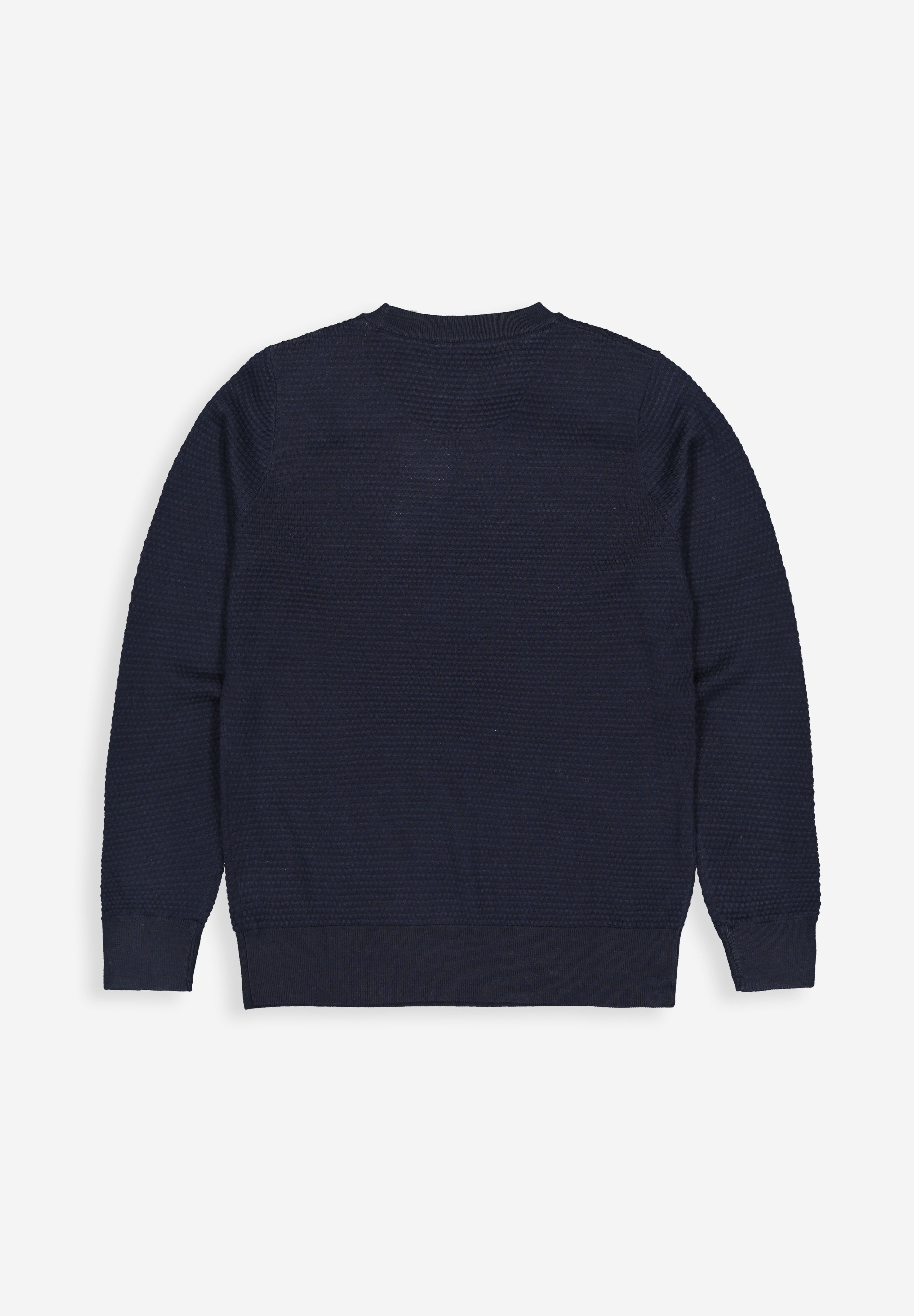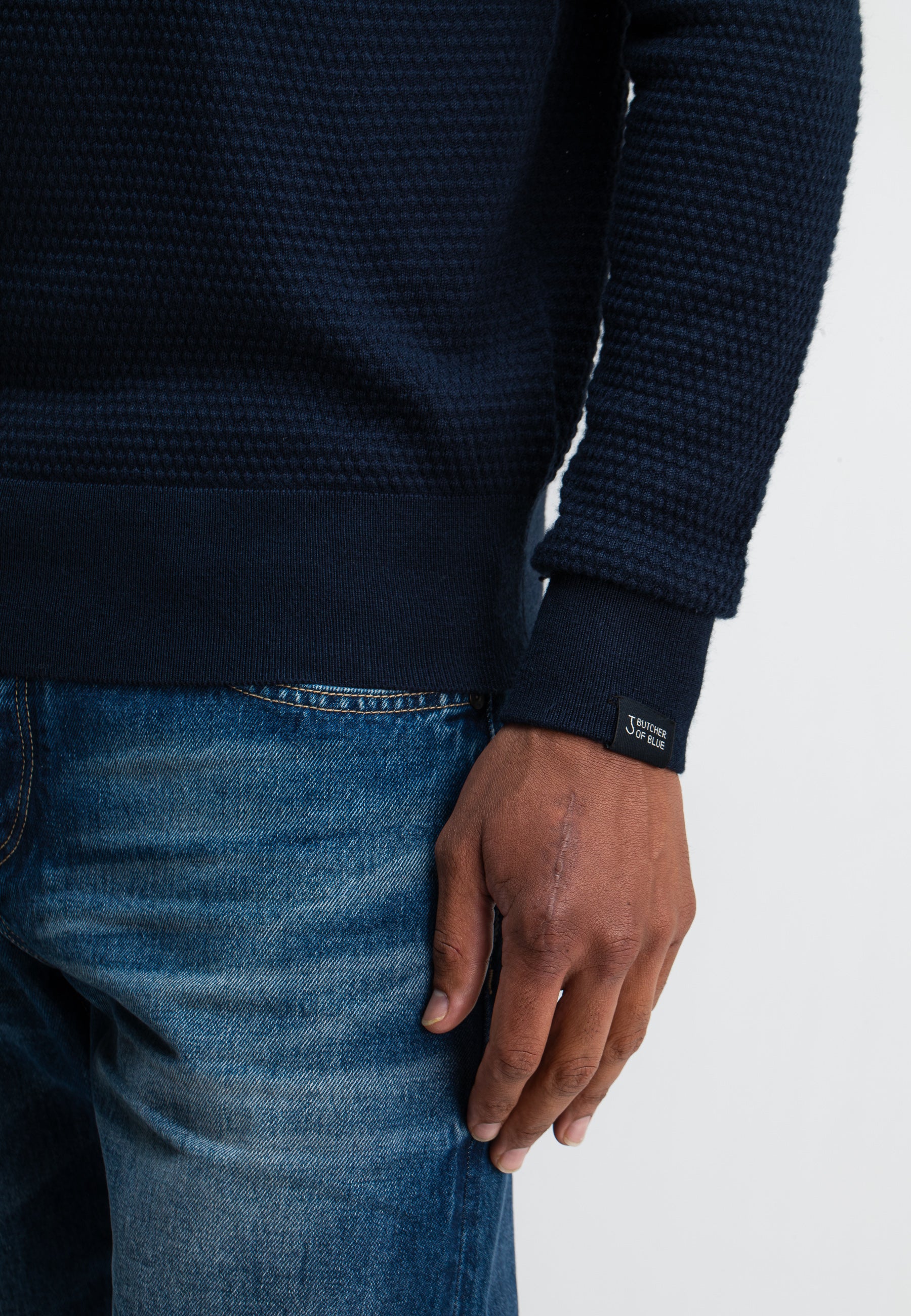 De unieke compositie van het breisel is wat onze Structure uniek maakt. Door 50% Wol, 50% Acryl te mengen hebben we nogal letterlijk het beste uit verschillende werelden samengebracht, hierdoor is deze trui zacht, warm, duurzaam en stijlvol. De trui heeft een ronde hals die mooi aangesloten zit en unieke details als het bolletjes patroon. De butcher ‘hook badge’ maakt het artikel op een subtiele manier af.
